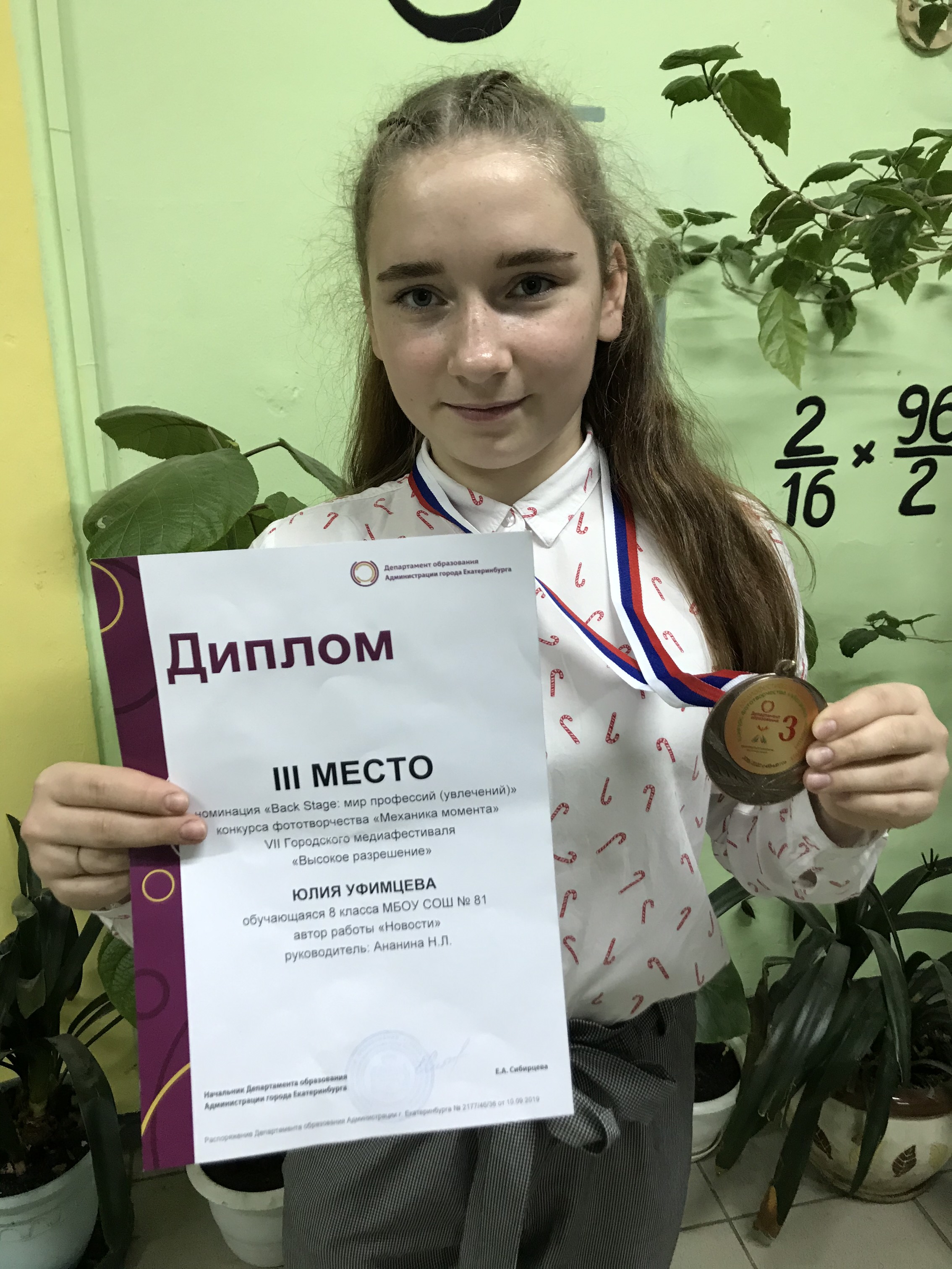 Обучающаяся МБОУ СОШ №81 Уфимцева Юлия заняла 3 место в номинации "Back Stage: мир профессий (увлечений)" в конкурсе фототворчества "Механика момента" VII Городского медиафестиваля "Высокое разрешение".
